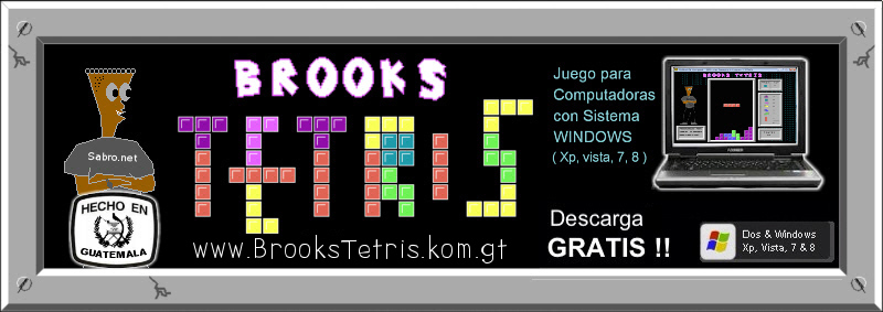 Brooks Tetris es un juego muy adictivo, hecho en Guatemala, el juego te desafiará a colocar y mantener tu nombre en el primer lugar de la página de "RECORDS" y así tener otra opción mas en tu computadora, jugando Tetris en vez de Solitario.